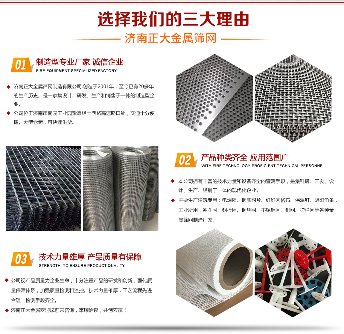 濟(jì)南正大金屬篩網(wǎng)制造有限公司,成立于2001年,至今已有20多年的生產(chǎn)歷史,主要生產(chǎn)建筑用:電焊網(wǎng)、鋼筋網(wǎng)片、纖維網(wǎng)格布、保溫釘、陰陽(yáng)角條,工業(yè)所用,沖孔網(wǎng)、鋼板網(wǎng)、鋼絲網(wǎng)、不銹鋼網(wǎng)、銅網(wǎng)、護(hù)欄網(wǎng)等各種金屬篩網(wǎng)制造廠(chǎng)家。 本公司擁有豐富的技術(shù)力量和設(shè)備齊全的查測(cè)手段,是集科研、開(kāi)發(fā)、設(shè)計(jì)、生產(chǎn)、經(jīng)銷(xiāo)于一體的現(xiàn)代化企業(yè)。公司位于濟(jì)南市南園工業(yè)園緊靠經(jīng)十西路高速路口處,交通十分便捷。